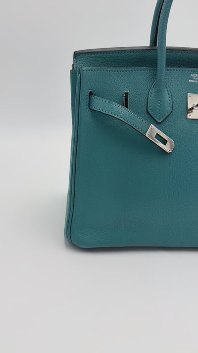 Selective Closet vous présente ce superbe Birkin 25 en cuir chèvre, présenté dans la teinte turquoise et sublimé par des finitions palladium hardware.