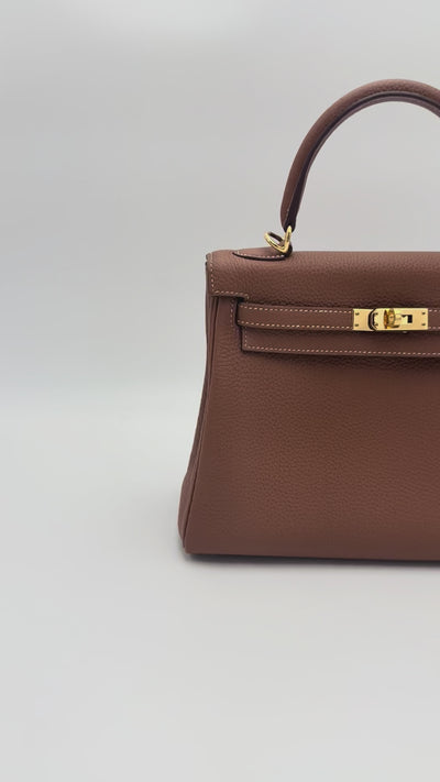Selective Closet vous présente ce superbe Kelly 25 en cuir togo, présenté dans la teinte gold et sublimé par des finitions gold hardware.